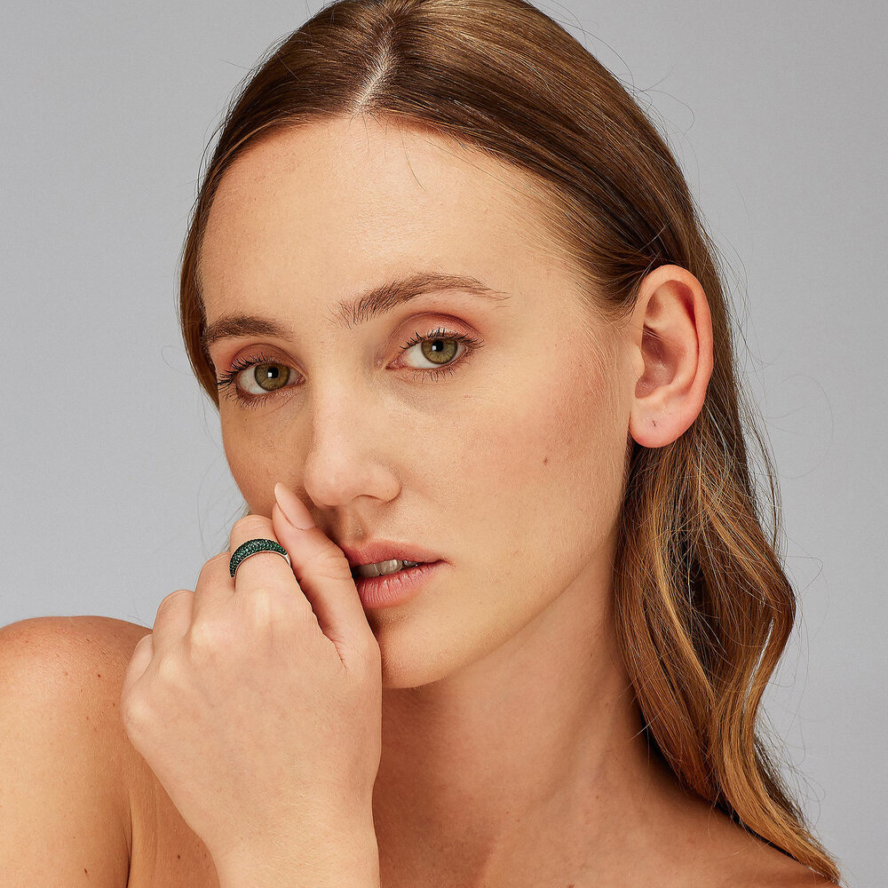 - Ozdobiona zielonymi cyrkoniami sześciennymi, nadaje delikatny i nowoczesny wygląd