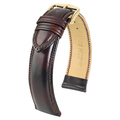 Głęboko barwiona w beczce, tamponowana ręcznie skóra cielęca w tradycyjnym stylu Chesterfield z charakterystyczną powierzchnia dwóch tonacji.